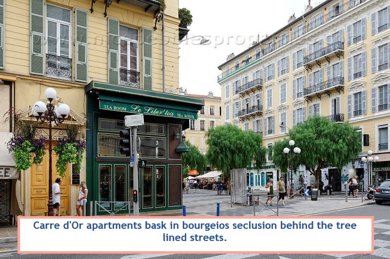 Located between Place Massena and the classy Musiciens area, Carré d'Or is one of the most stylish addresses in Nice. Apartments in this affluent residential zone sit a few blocks back from the beach, and bask in bourgeois seclusion. Interspersed between the ritzy buildings are glamorous boutiques and interior design stores, as well as neighbourhood bakeries and fine epiceries.