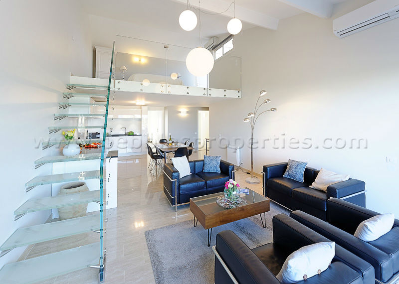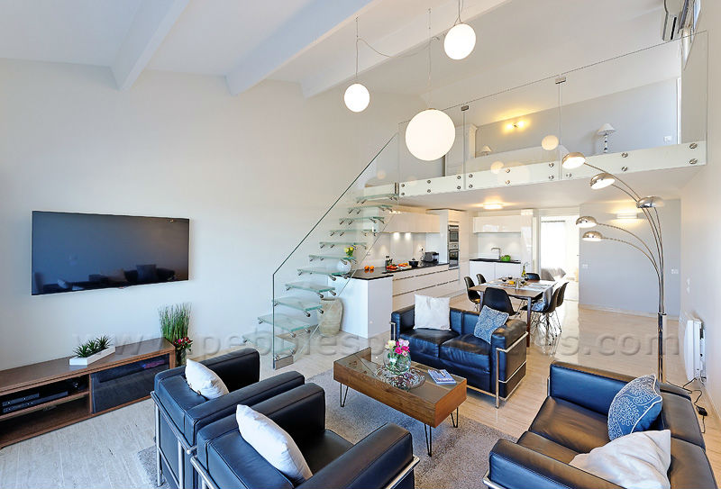 Central, modern, spacious and with utterly breath-taking views, this beautiful duplex apartment in central Antibes will instantly win the hearts of its guests. Marvel at this glamourous vista of the Port, the famous Fort Carré and the Mediterranean beyond from either the spacious first floor terrace or the generous roof terrace - the perfect setting for long, hot evenings with good wine and good company.