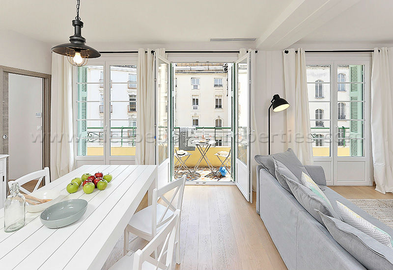 Set slightly off the main street this apartment provides a quiet, calm and relaxed environment in which to retreat. Filled with natural light and complete with a large balcony, air-conditioning and an ensuite bathroom for each of the two bedrooms, it is a comfortable and stylish choice for your holiday on the French Riviera.