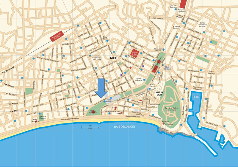 Only a block from the Promenade des Anglais and the beach, guests can choose to sit by the sea to have their aperitif. Or alternatively, right on your doorstep there is the park La Coulee Verte and Place Massena where you can enjoy a drink with the locals on the terrace of one of the relaxing cafe/ bars.