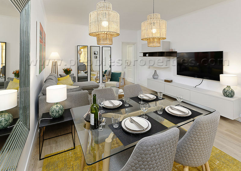 The apartment has four balconies, two with table and chairs (off the bedrooms) and two smaller ones off the living room and kitchen area.