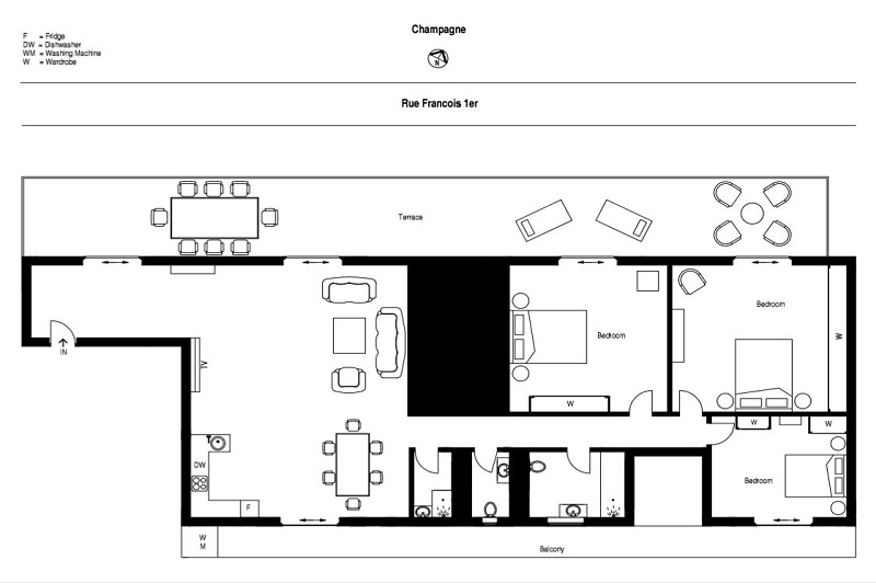 This room also provides access onto the very generous terrace with another large dining table that will comfortably seat six.