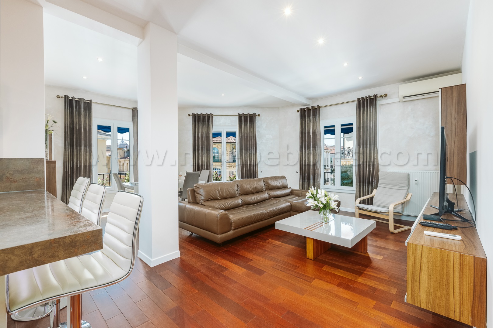Notre Dame is located a stone's throw from the church of the same name, just off the main shopping street of Jean Medecin, with easy access to the tram taking you down to the, old town, beach and beyond.