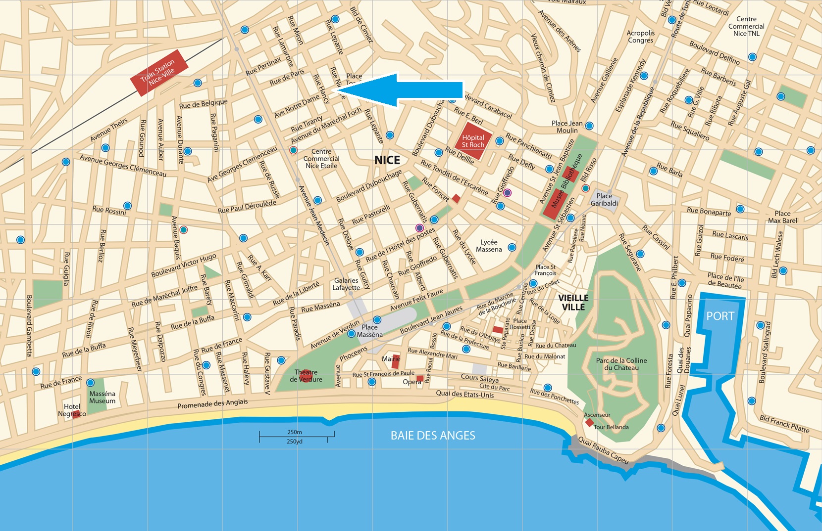 Avenue Notre Dame, just off Avenue Jean Médecin, is right in the heart of Nice’s main shopping district. Good restaurants are on your doorstep, and all of the major places in Nice, including the Old Town and the Promenade are within a 15 minute walk away.