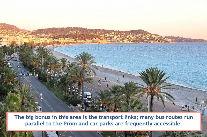 The Promenade’s other big bonus is its public transport links. Guest walking out of Nice airport can be checking in to their property ten minutes later. Bus 12 connects Promenade to Vieux Nice. Otherwise, the tram stops are a few minutes away from all the properties along the Promenade.
